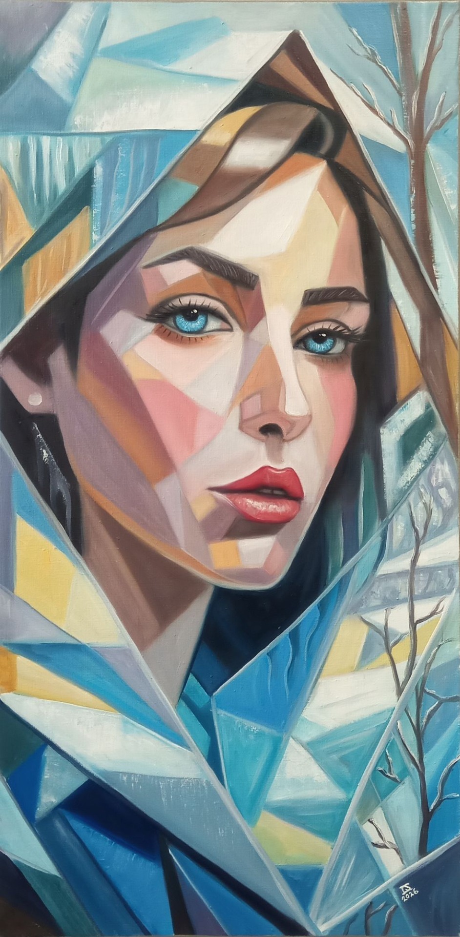 Tvář ženy vystavěná z pevných linií ukrývá křehký příběh touhy. Pohled očí je otevřený, očekávající, a v něm se rodí tiché volání po blízkosti. Obraz zastavuje okamžik, kdy srdce napjatě čeká na dotek, který ještě nepřišel.