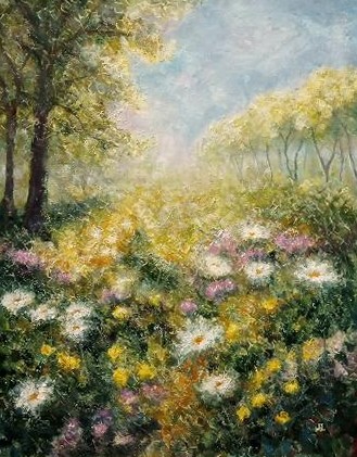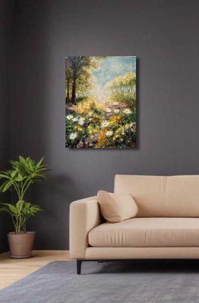 V ranním oparu se probouzí zahrada plná barev a vůní. Paprsky slunce se dotýkají květů a rozzáří každý okvětní lístek, jako by se z nich znovu rodil život. Obraz je hymnou tichému okamžiku, kdy se příroda nadechuje – místem, kde světlo není jen v prostoru, ale i v duši.